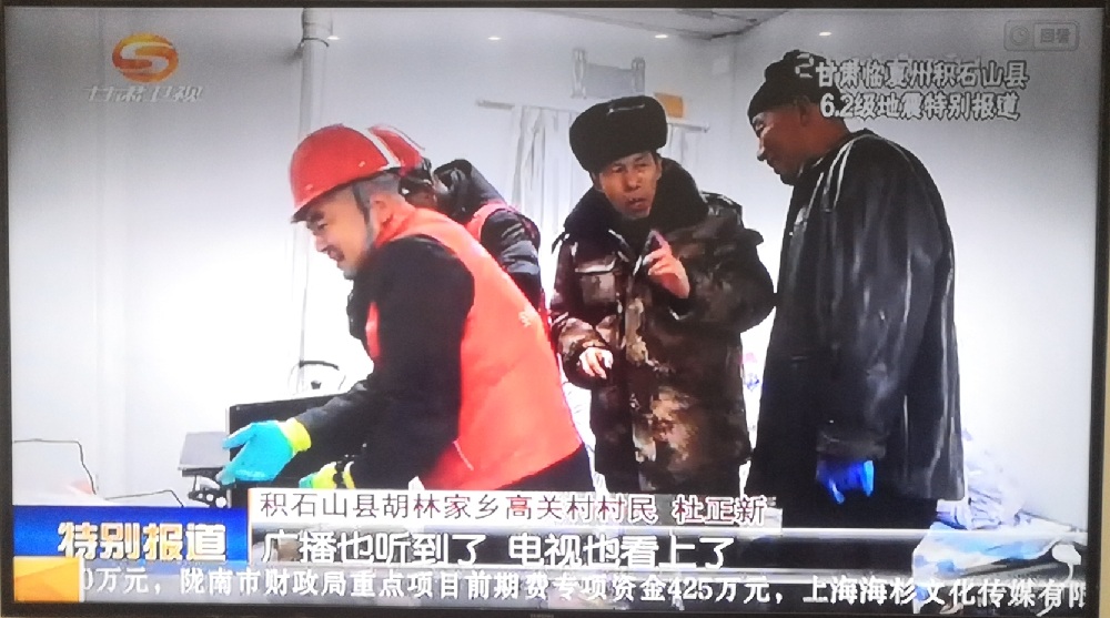 地震發(fā)生后,根據(jù)國家廣電總局衛(wèi)星直播管理中心的倡議和部署,青島海盈電子有限公司立即向震區(qū)捐贈新一代直播衛(wèi)星戶戶通設備20套,包括新一代單、雙模衛(wèi)星直播系統(tǒng)高清綜合接收解碼器、北斗專用高頻頭、衛(wèi)星接收天線、饋線等。設備已于12月27日緊急抵達甘肅省廣電局并由廣電局第一時間安排專人派發(fā)、安裝到地震災區(qū),震區(qū)群眾可以在第一時間通過戶戶通設備收聽收看93套直播衛(wèi)星電視節(jié)目和46套廣播節(jié)目,通過廣播電視及時收聽收看抗震救災報道和生產自救知識。